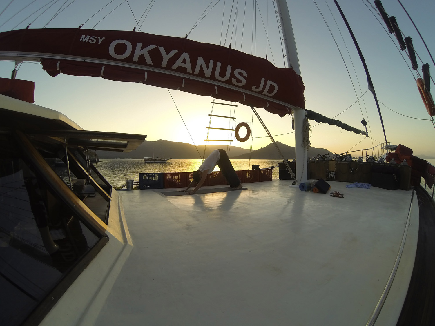 Teknemiz MSY OKYANUS JD hem güverte üstünde ve hem de arkada geniş bir alana sahiptir. (Matların rahatça yerleştirilebileceği alan ölçüleri : 4.80cm x 4.40cm ön güverte, 4,40 cm x 3m üst güverte) Teknemiz OKYANUS JD ve kabinler hakkındaki bilgilere link üzerinden ulaşabilirsiniz. Arka ve ön alanları geniş tekneler çeşitli aktivitelerin yerine getirilmesinde daha konforludurlar. Biz 2006 yılından itibaren dalışlı mavi yolculuk ve mavi yolculuk turları düzenlemekteyiz. İlk başladığımız andan itibaren tek amacımız misafirlerimizi memnun etmek ve onları mutlu uğurlayabilmektir. Almanca veya İngilizce olsa da bizim hakkımızdaki oylamaları görebileceğiniz Google ve Tripadvisor web sayfalarını ziyaret etmenizi rica ediyoruz. Tekne üzerinde yoga / pilates tatili turlarımıza 2013 yılından itibaren devam etmekteyiz. Lütfen @okyanus_blue_liveaboard instagram sayfamızı ziyaret ediniz. Bizi takip etmenizden mutluluk duyarız.